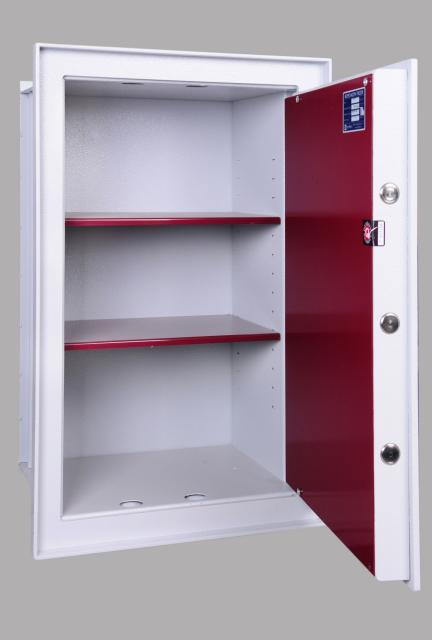 Certifikovaný stěnový trezor. Dle EN 1141–1 bezpečnostní třída I. Dle NBÚ technický prostředek typu 3 (Tajné).